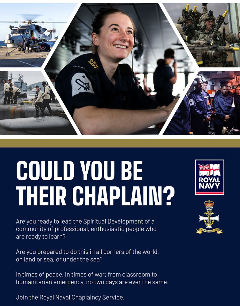 Royal Naval Chaplaincy wants to recruit superb leaders who can underpin, build and sustain the spiritual foundations of our sailors, officers and Royal Marines, for both Regular (full time) and Reserve (part time) Commission.