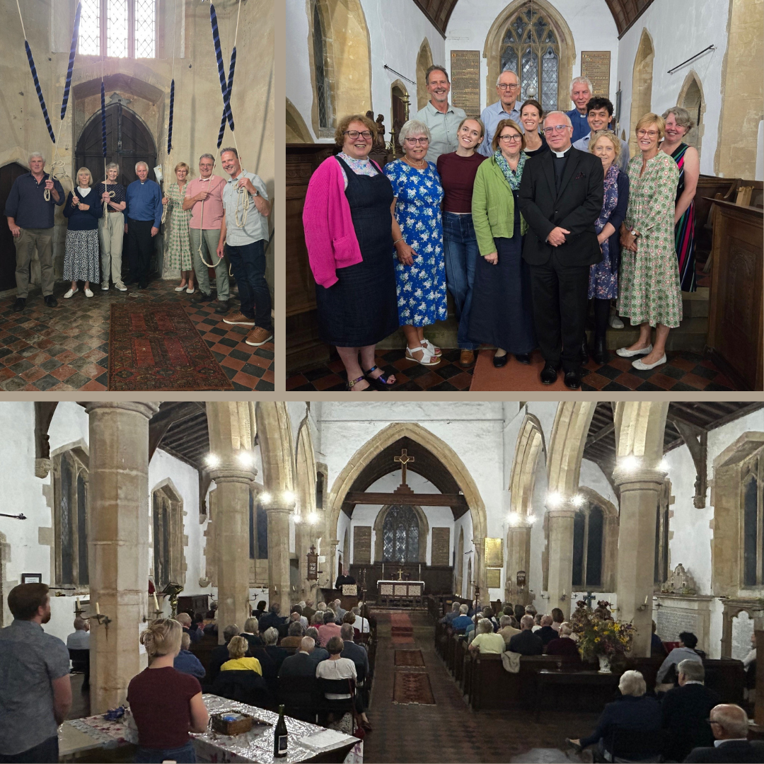 Pictures (clockwise from top left): Bellringers welcome the Dean; members of the Hamerton PCC together with helpers. (Left to right: Revd Canon Fiona Brampton, Jane Swales (PCC member) Mark George, Anna-Sophia Henry, Mrs Janet Hoyle, Jim Swales); it was a full house for the evening's talk.