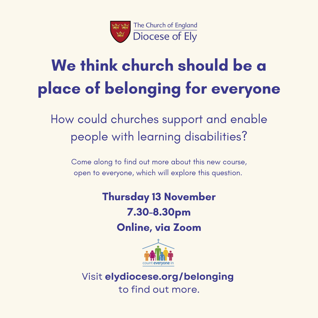 In collaboration with Count Everyone In, the Diocese presents this training course for anyone who wants to learn more about supporting people with learning disabilities, both in churches and in our communities. Come along to our first session to find out more.