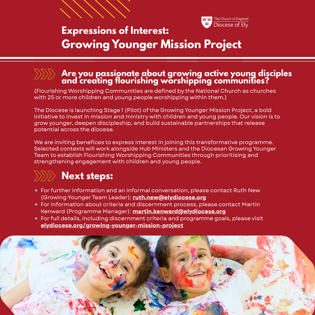 - For further information and an informal conversation, please contact Ruth New (Growing Younger Team Leader): ruth.new@elydiocese.org