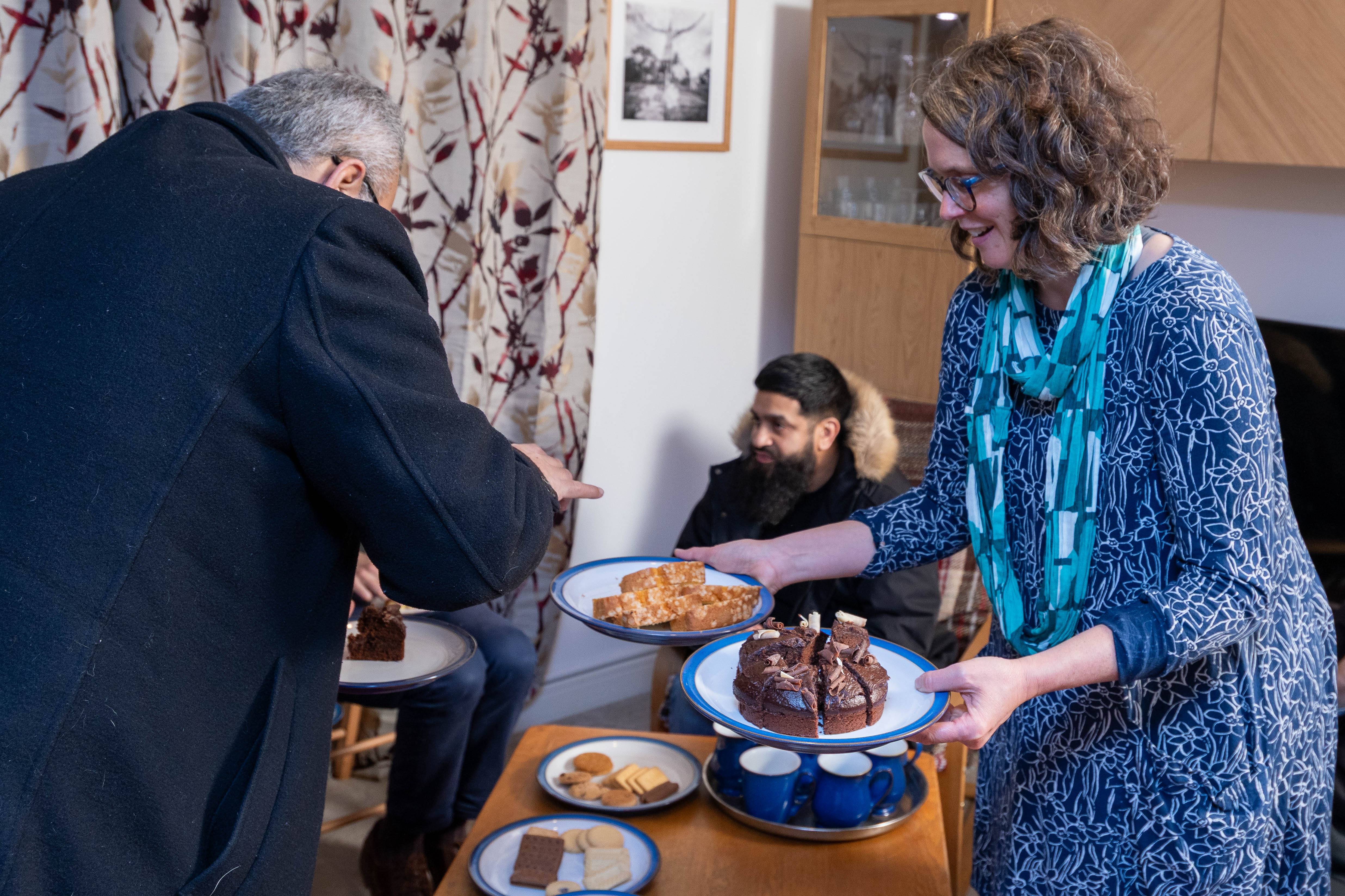 Photo 2: In true Northstowe spirit, Muslims and Christians squeeze into one of our homes to share tea, cake, and friendship.