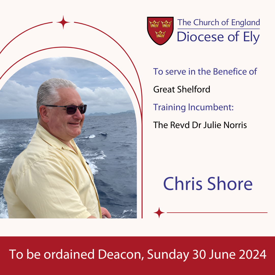 Christopher John ShoreChris grew up in a Christian family in Anglican churches both in England and Uganda. After boarding school, he studied Computer Science at Cambridge. He met Davina, now his wife, in the music group at St Andrew’s Street Baptist Church, and they married there and remained there until 2016, when they moved to St Andrew’s in Cherry Hinton. During training he has enjoyed being attached to Great St Mary’s in Cambridge and is delighted to look forward to serving as curate with Rev Dr Julie Norris at St Mary the Virgin in Great Shelford. Prior to ordination, Chris enjoyed a 35-year career in IT, latterly at Arm Ltd in Cambridge where he worked for 22 years. While running Arm’s customer training group, he personally delivered over 100 training courses and spoke at over 80 conferences, flying over 2 million miles and visiting 27 countries. Chris retired from Arm in June 2022 and began studying for ordination at Ridley Hall in September 2023. Since retiring, he has volunteered in the chaplaincy team at Addenbrookes Hospital, and with the Schools and Universities teams at the Faraday Institute, resourcing school pupils and student teachers around the interface between science and faith. Chris and Davina (a self-employed primary school music teacher) have been married for 34 years and have two grown-up boys who have both been successfully launched into careers - one in the wine trade in London, the other as a software engineer for a games company. |