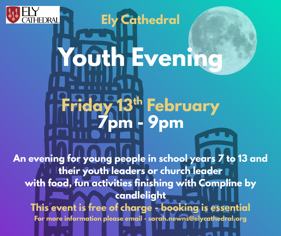 Young people (school years 7-13) are invited, along with their Church/ Youth leaders, to a Youth Evening event in the Cathedral.
