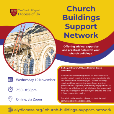 Many events advertised on this page on behalf of our parishes may also be subject to change or cancellation. Please contact the event organiser to be sure of whether the event you are expected to attend is still planned to go ahead. Please note the Diocese is not responsible for the managing or hosting of events arranged or delivered by non Ely Diocesan Board of Finance staff.
