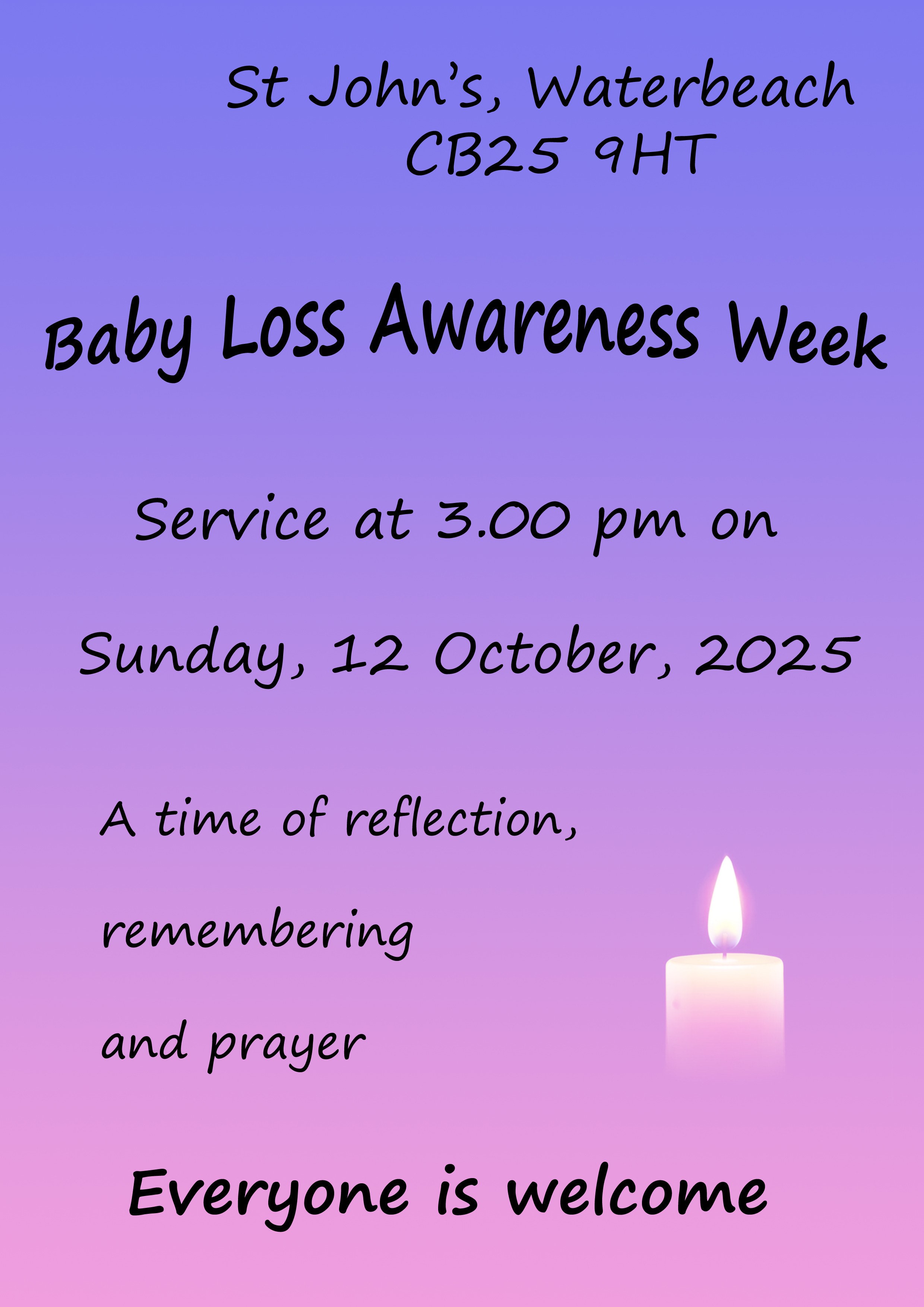 St John's Waterbeach are holding a Baby Loss Awareness Week service on Sunday 12 October at 3pm.