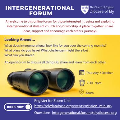 Many events advertised on this page on behalf of our parishes may also be subject to change or cancellation. Please contact the event organiser to be sure of whether the event you are expected to attend is still planned to go ahead. Please note the Diocese is not responsible for the managing or hosting of events arranged or delivered by non Ely Diocesan Board of Finance staff. You can use the 'Tags' dropdown or the search bar below to look for events by type or by name. You can also use the scroll arrows to look ahead to future months.