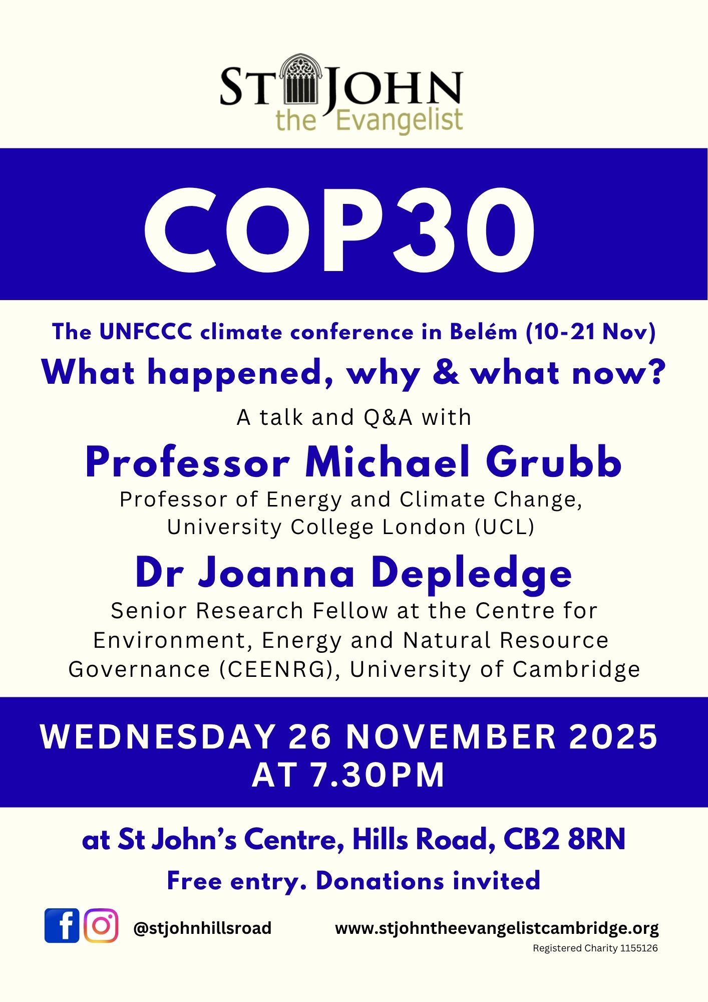 An event at St John the Evangelist Church in Cambridge on Wednesday 26 November, at 7.30pm, hopes to shed light on these issues. Climate COP30: What happened, why, what now? will present talks from Professor Michael Grubb, Professor of Energy and Climate Change, University College London; and Dr Joanna Depledge, Senior Research Fellow at the Centre for Environment, Energy and Natural Resource Governance, University of Cambridge. They will speak about some of the key aspects of COP30 and the potential consequences of the conference. They will also take some questions from the audience.